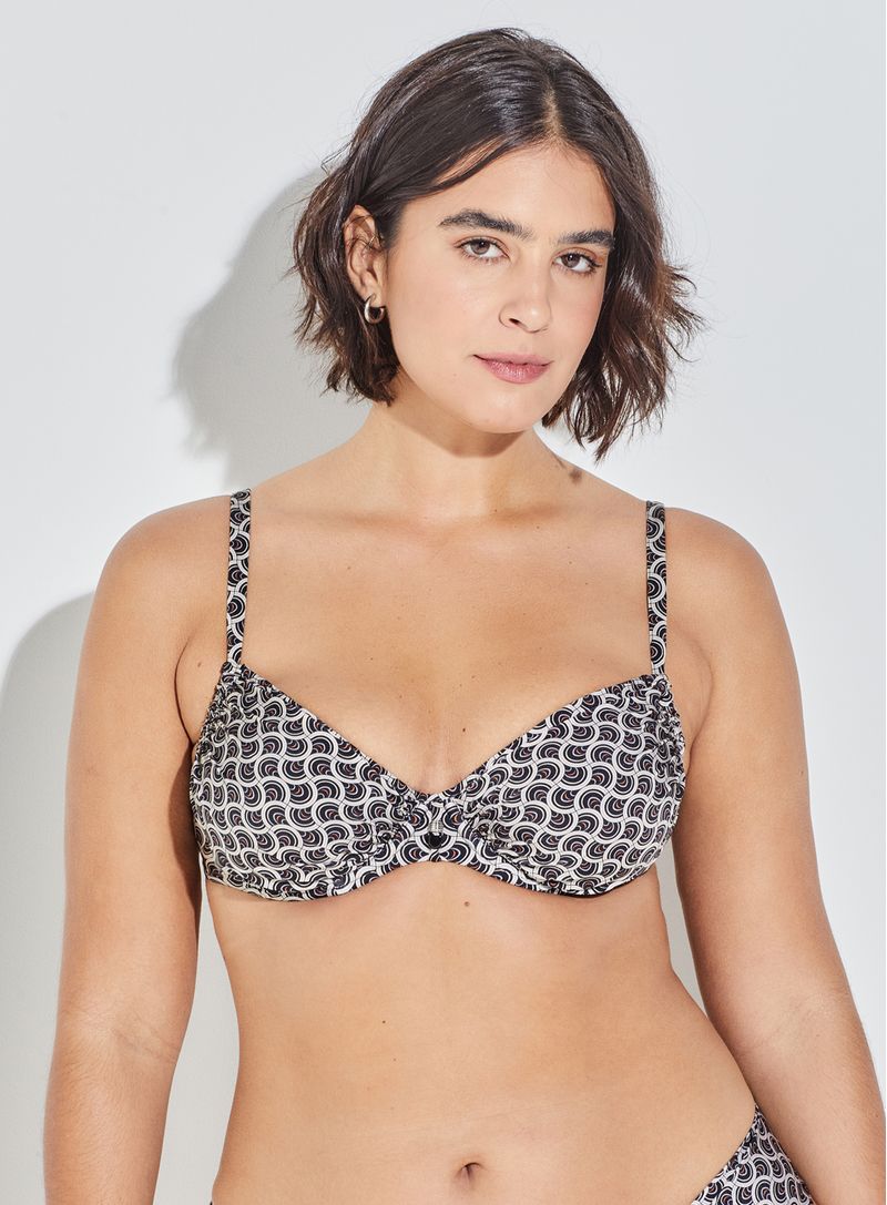 Esse biquíni é muito especial. Seu bojo é construído internamente com um tecido Tule Power para dar maior sustentação. Já por fora, ele é composto pela Microfibra Trilobal, com um franzido nas laterais que deslizam para cima e para baixo, assim você pode regular a cobertura dos seios! Não é incrível?