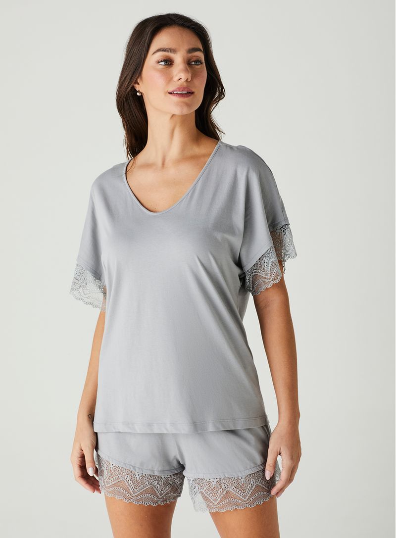 Um delicioso e exclusivo tecido da Liz, feito em algodão penteado e acabamento inovador. Macio, sedoso, fresco e respirável. Combinado com a delicada renda Lovely, também exclusiva da Liz e super macia, formam o suprassumo do pijama perfeito.